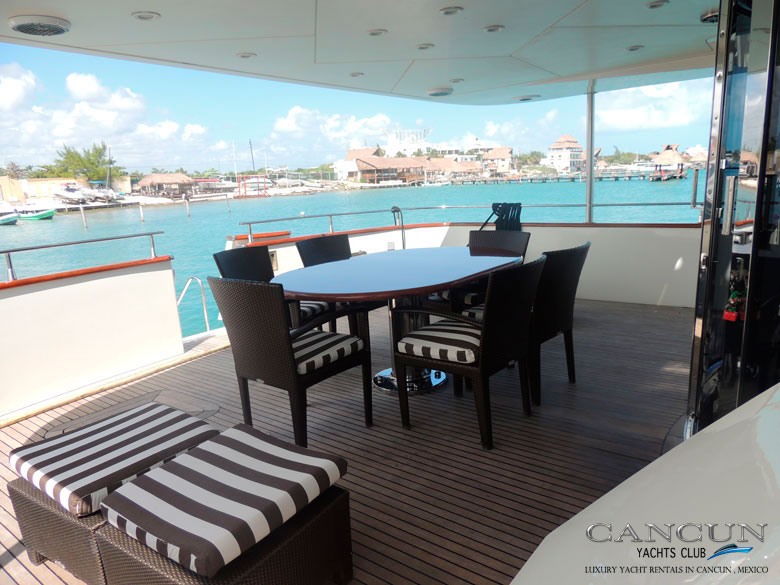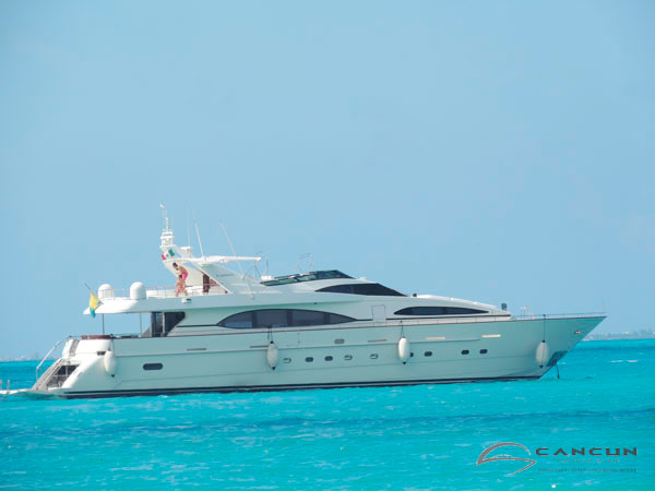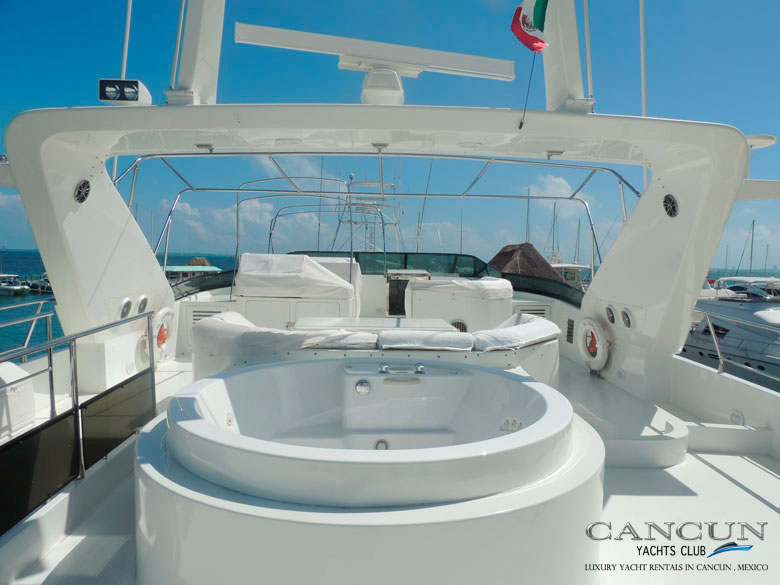 Luxury Azimut 100ft, yacht crew 2001 year. This mega yacht have all the performance and accommodate for all the customer, the largest boat in Cancun now its on rental. Join the full activities, Jacuzzi for your Exclusive Relaxation, Snorkeling in the particulars areas, swimming in the pristine waters of the Caribbean sea, Discover and enjoy on the top of the luxury service.