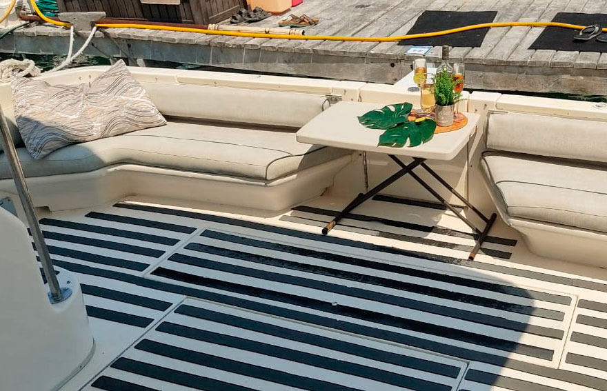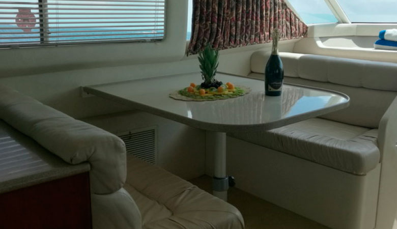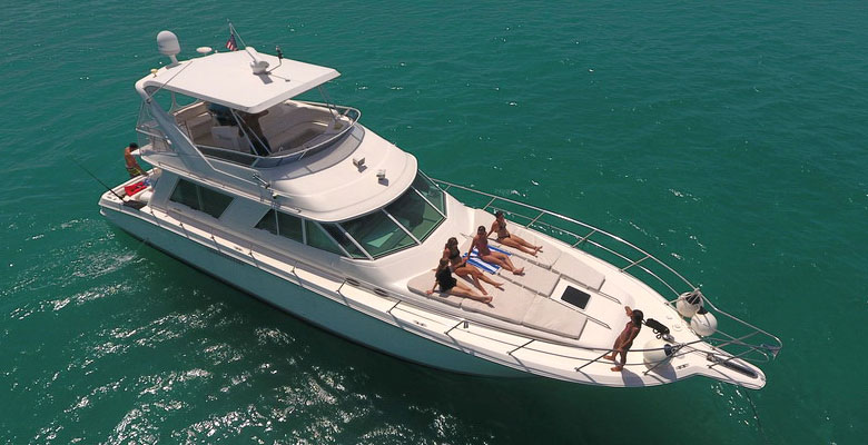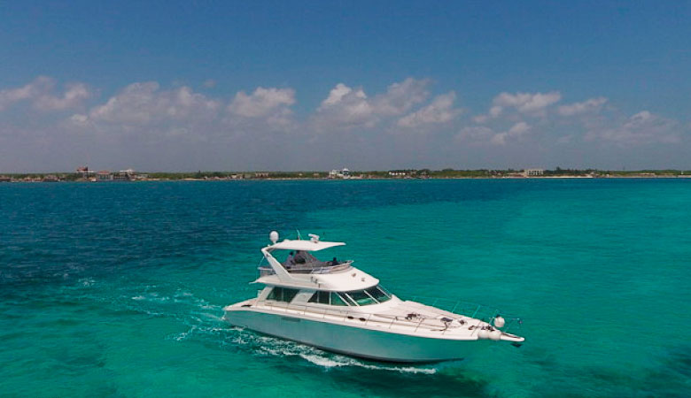 Enjoy a spectacular fun Day on the water, exclusive Yacht for a glamorous Tour in Cancun, join your Day on this beautiful boat , jumping on the back ramp, perfect view on the top area, sunbathing front size, and more spaces for a perfect Day on the crystal clear water of Cancun.
