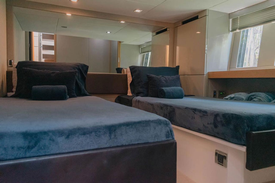 - Key Features: 3 Bedrooms, 2 Bad Rooms, TV Plasma, Audio Bosse System, Ipod In, Kitchen, State Room. * Towels, Snorkel equipment, Beberages, Snacks, and Crew are included.