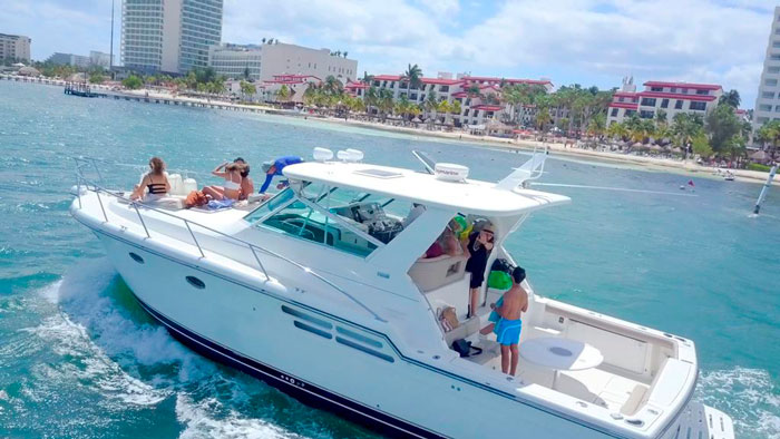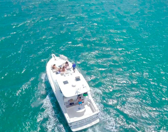 A Boat to satisface everyone’s expectations looking for adventure and partys, for cruising and relaxing tour. Small boat for small groups activities to do, cruising, swimming, bachelorette, amazing boat for everyone to want join a exclusive day, cruising in all the Bahia of Cancun and relaxing close to the most beaches in Cancun Mexico.